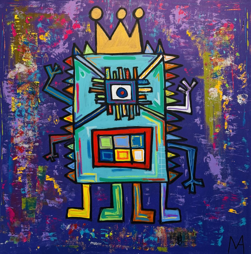 Titel: Electric Crown, Größe: 130x130cm, Acryl & Oil Stick auf Leinwand, 2025