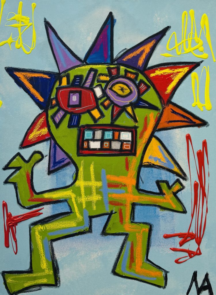Titel: Signal Keeper, Größe: 60x80cm, Acryl und Oil Stick auf Leinwand, 2026